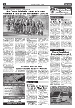 El carmelitano Pablo semillero del ciclismo Emiliano Montalban (Du- Puentes (Florida), 3º Joel categorías U19 y U21. cia, en quinto lugar finali-