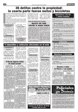 nuncia radicada el 26/8. nifestó que hizo una reco- Reparto inconcluso piedad; aportó fotos desde Marcharon 2 bicicletas
