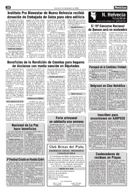 El Instituto Pro Bien- bajador de Suiza Daniel para presentar a la Emba- U$S12.000, por el presu-