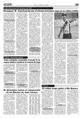 Diversas actividades putaran en el fin de sema- Departamental de Fútbol tencia tomando a la de- iniciales para Nacional bién en Salto la ida de las