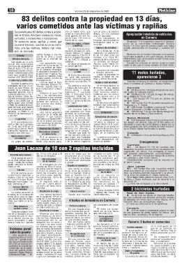 Se comunicaron 83 delitos contra la propie- chó un fuerte ruido, que con un palo y le robaron