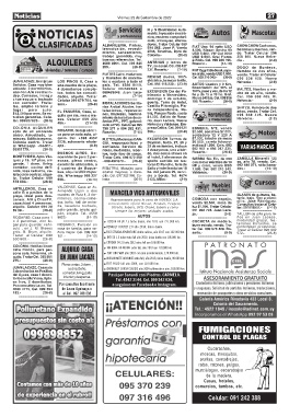 tudian garantías. Celu- quilo por día, mes o me- miento de todo tipo de ca- $1.000. Salida de Rosa- Helvecia.- (2-9)