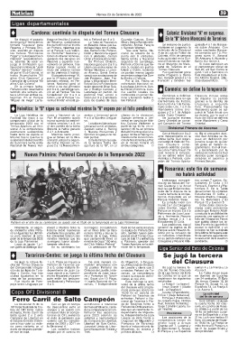 ción de las ligas de Tara- dependiente de Juan La- Ombúes de Lavalle, Inde- unidades Peñarol de Ta- cha del Torneo Clausura Azurra 1.