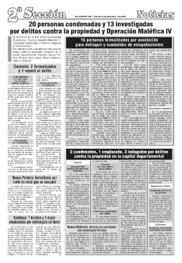 capital departamental, Carmelo, Nueva Pal- en la Operación Maléfi- en reiteración real con un cientes. Pena: 20 meses I.F. C.G.L. y M.L.