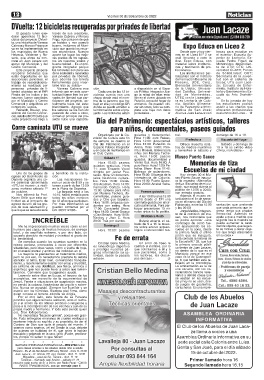 sidente del Centro Comer- pasando de unos a otros, yecto. Las bicicletas están personales.- Alianza Juan Lacaze con exalumnos del Liceo.-