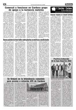 cedes y otra hacia Cardo- manejo de maquinaria pe- apoyo a la medicina con- Aclaró que “si bien para
