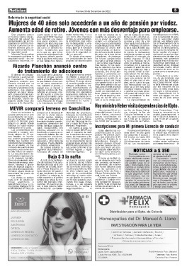 Colonia contará con un tro de estas característi- rá consulta gratuita de psi- años tiene pensión de por das desocupado con 55 ra de la reforma van a que-