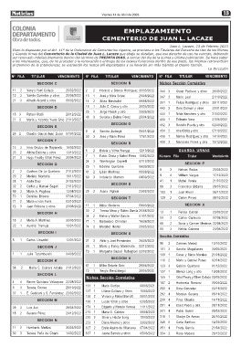 y Guarda Urnas del Cementerio de la Ciudad de Juan L. Lacaze que abajo se detallan, que ese derecho de uso ha vencido, debiendo