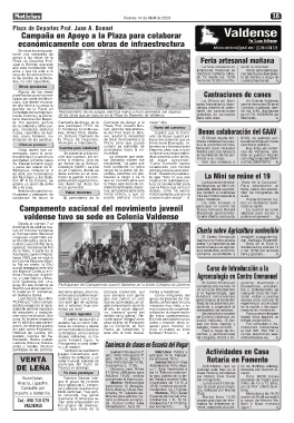 cipio, que desde el pasa- La Oficina de Bien- En Colonia Valdense