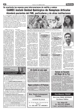 gará a representantes de las comunidades de Soriano Tel. 4552 2887. Cel. 099550672 E-mail.: escfrade@adinet.com.uy