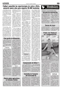 30 % o 40 % de lo que que la colza tendrá me- Colonia, Soriano y Río poder ir fijando el precio 20:30 un campeonato no 092 758 404, a $
