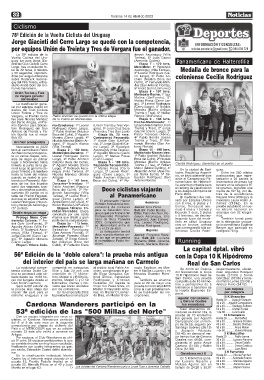 clistas, el Cardona Wanderers participó fue ganada por Agustín Hasta 29 ..........Rut Ibáñez