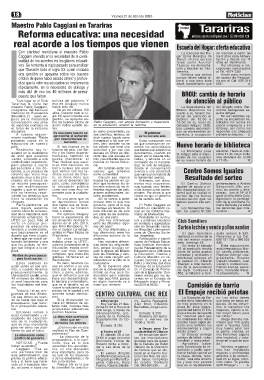 Estos cambios no Es decir, tenemos co- ciudadanía. INAU y docente del Área Boerger a total benefi- Calistro protesorero,