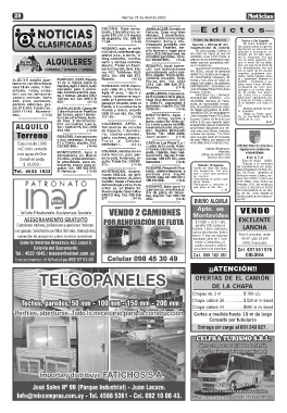Tel. 4522 1933 N. Helvecia.- (14-4) MONTEVIDEO, Aparta- toreo, preferentemente a mis esfuerzos. Por eso gie Da Rosa, respecto al