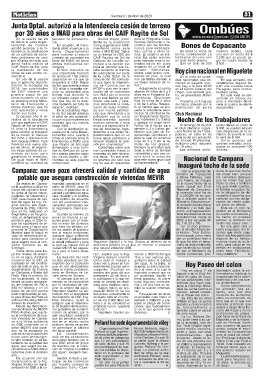 por 30 años del solar que favor del INAU, tal como Ombúes de Lavalle co- para trasladar toda la ac- un auto como premio. gar en cuatro cuotas de