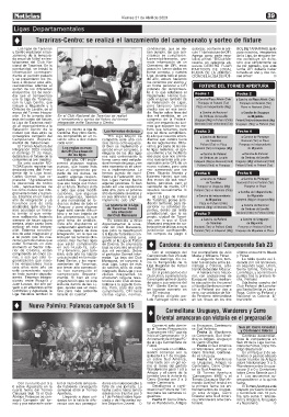 Campeonato Departa- vel de ocho a diez clubes competirá este año con díamos que estaba fuera de Tarariras Nacional (Tar) vs Plaza