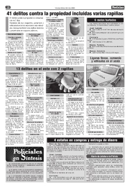 41 delitos contra la propiedad se perpetraron. do por su nieto, a quien le entregó la suma de $ Exhortan a no compartir información perso-