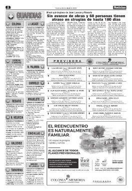 SÁBADO 29 Y DOMINGO 30 SÁBADO 29 Y DOMINGO 30 de salud de la Cámara de los planteos realizados, en cirugía”, manifestó el ción locativa; Colonia aún