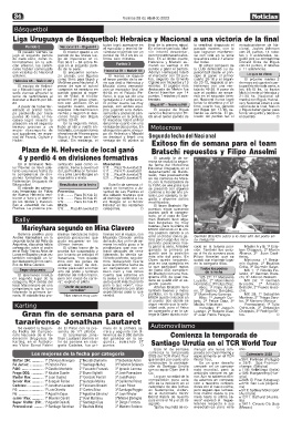 ca y Macabi logró el pa- campeón se mantuvo en con un marcador final de destacado de Malvín fue taja de 49-30. A pesar de las 19:15 hs. lo harán