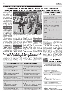 habernos llevado algo, en rracas (Dolores) 2 - Na- go De Carlos. DT. Gastón Pueblo Nuevo la más cla- do complicado contra un zón. DT. Ramón Doglio.
