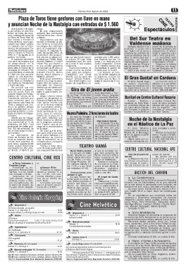 CENTRO CUL Gaitez, ofrece dos funcio- Mejor Espectáculo del Gardel Se exhibe con en-