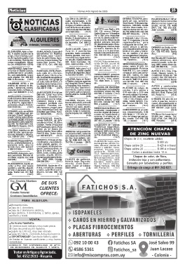 personas, alquilo. Celular corredor. Frutales, am- de Ruta 1 y Zona Franca, 904. J. Lacaze.- (14-7) Juan Lacaze.- (14-7) día, vendo USD 2.500. Cel.