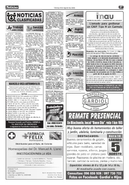 cias, se ofrece. Cel. 098 4554 5846. Cel. 099 025 =============== Helvecia.- (25-8) agosto de 2023 a las 15:30 horas. En caso de no