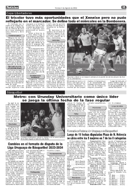 Liga Uruguaya de bás- Además, el noveno y Incorporaciones Montevideo y Las Piedras. ting (28), 3º Lagomar (24), Este fin de semana los
