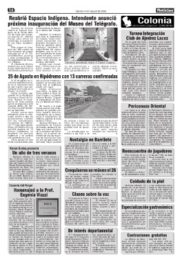 do de nuestro corazón nosotros", expresó per- Hotel Sheraton Colonia. terés departamental desde las 8:00 en el El General. Agenda por