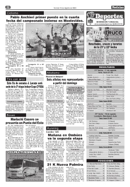 SA’ de tiro con arco. dad es abierta para todos la selección uruguaya. Miércoles 23 de agosto San Carlos ........................ 1 ...... Dep. San Pedro (Vóley) ..... 4