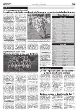 los rosarinos que quedan venía de ganarse el pasa- 0. do tres triunfos y dos de- Sub 17: Plaza Colonia Sub 14: Progreso 2-