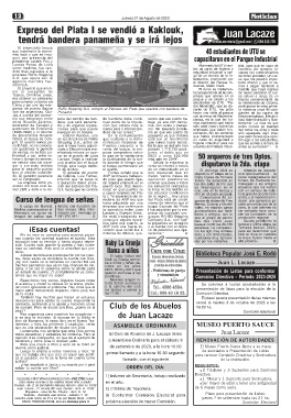 genes de puerto Sauce RoRo Shipping S.A. compró el Expreso del Plata que operará con bandera de cente de UTU, me pidió ra instancia unos 40 estu-