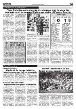 que en sus nueve edicio- de Uruguay en la cita máxi- mento de celebración del campeón del torneo intermedio del fútbol uruguayo