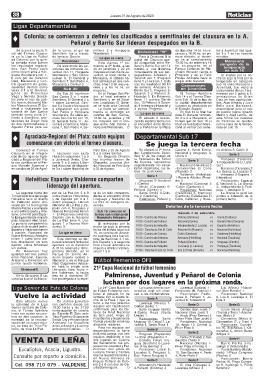 de Valdense sobre Uni- sobre Uruguayo. Lideran La Paz en categoría re-