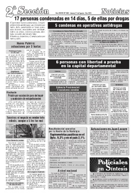 El Juzgado Letrado de cias estupefacientes. ción. El Juzgado Letra- en concurso fuera de la régimen de libertad a Detenido por hurto