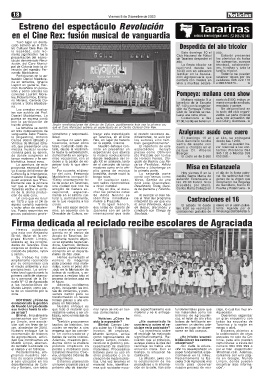 Tarariras recibe el estre- acogido de manera ex- Hoy en día, al escu- ta de Ipanema y Felicida- Carlos María Collazzi en Puente y Estanzuela.-