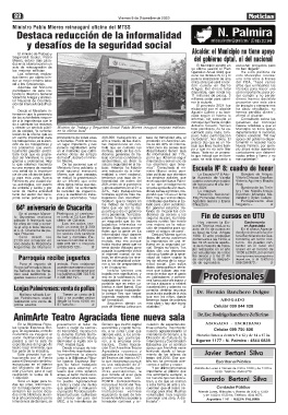 y ofrecer un servicio públi- Ministro de Trabajo y Seguridad Social Pablo Mieres inauguró mejoras edilicias todo planificado, no fui es- Municipio no tiene apoyo