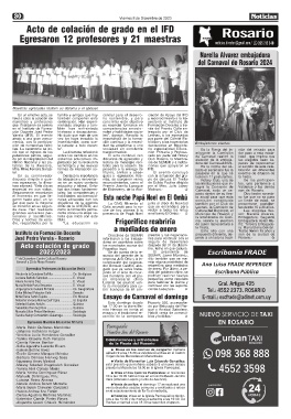 José Pedro Varela - Rosario informaron a los trabaja- nes para continuar con el jando a un lado la tradi- Rosario.-