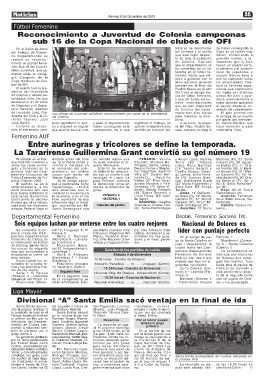 tararirense Guillermina la revancha, y en el tiro PEÑAROL 3 Lucía Flores. DT: Ceci- na Grant (N), 42' Wendy Árbitros: Fernando