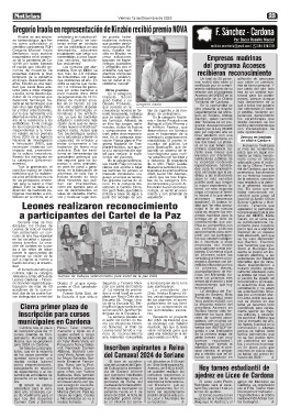 municipales en Cardona el salón del Centro de Ba- del árbol de Navidad que guieron, con muchas ca- los servicios”. Estima que