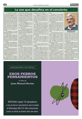 teamericano. Todo dicho. vivimos el tiempo de Advien- atada con un tiento a la cin- Desafina en el concierto la de Juan, ser sólo una voz y