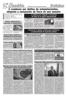 bre de 40 años quedó en la Intendencia de Colo- usurpación a la pena de 3 tad a prueba. tante de dos suinos.-