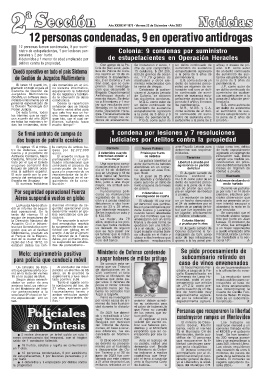 nistro de estupefacientes, 1 por lesiones per- Colonia: 9 condenas por suministro