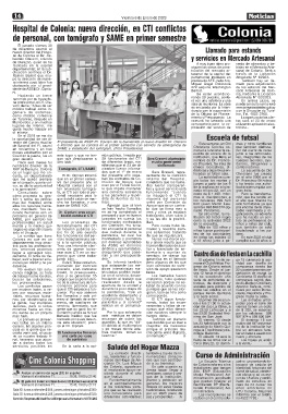 RAP de Durazno. Colonia Tomógrafo, CTI, SAME ciembre fueron informa- dácticas y deportivas en- La escuelita de Old