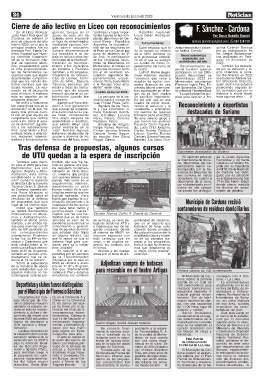 Agrario, Deporte y Admi- talmente en Ciclo Bási- cretaria de Deportes de de Cardona fue distin-