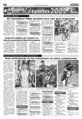 Serán 21 equipos los que responsable de la escue- ta de Montevideo el 15 de Otras Competencias Vuelta Chaná: Sebas- (Unión 33 Vergara)
