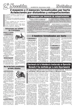ción indebida y por tenencia de estupefacien- Riachuelo. 1 emplazado en actuaciones por to médico a Tarariras y reintegrado a celda de se-