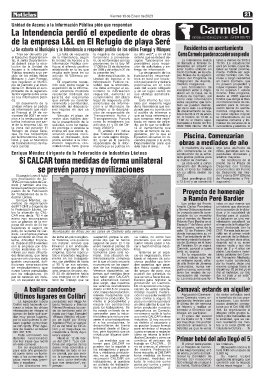 de Carmelo lo hizo de ma- mación respectiva, con- responsable de la infor- Departamental para que obras a mediados de año