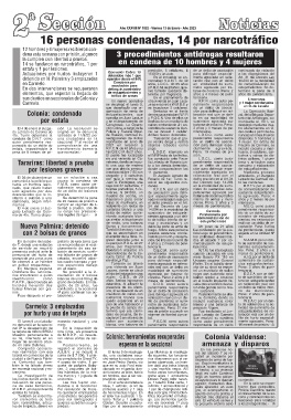 Canelones. La Opera- nailon conteniendo 21 en- tratarse de cocaína. Pena: desplegó mediante cua-