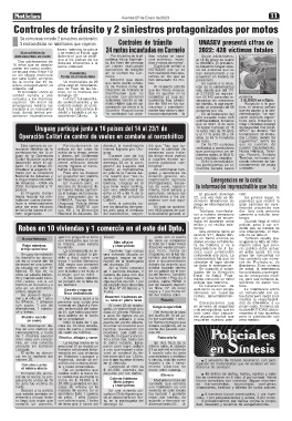 participación de Uru- salida de la droga, armas guay. sensores para tratar que participaron en si- Nueva Helvecia, Tarari-